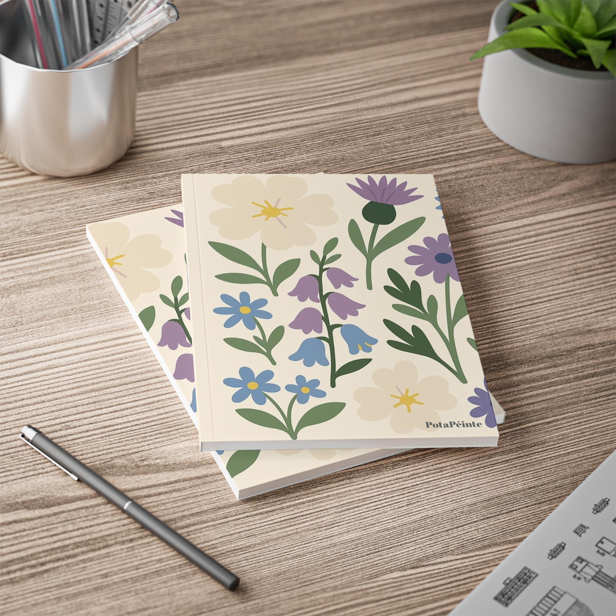 A5 soft notebook. Made with 90gsm lined papers (150 pages), each notebook features a high-end, glue-bound laminated cover with a matte finish. Your art decorates both the front and back covers in stunning detail. .: One size: A5 (5.9" x 8.3") .: 150 pages (75 sheets) .: 90gsm lined paper pages .: Glue bound laminated cover with matte finish .: Front and back cover print .: NB! Small barcode on the back cover