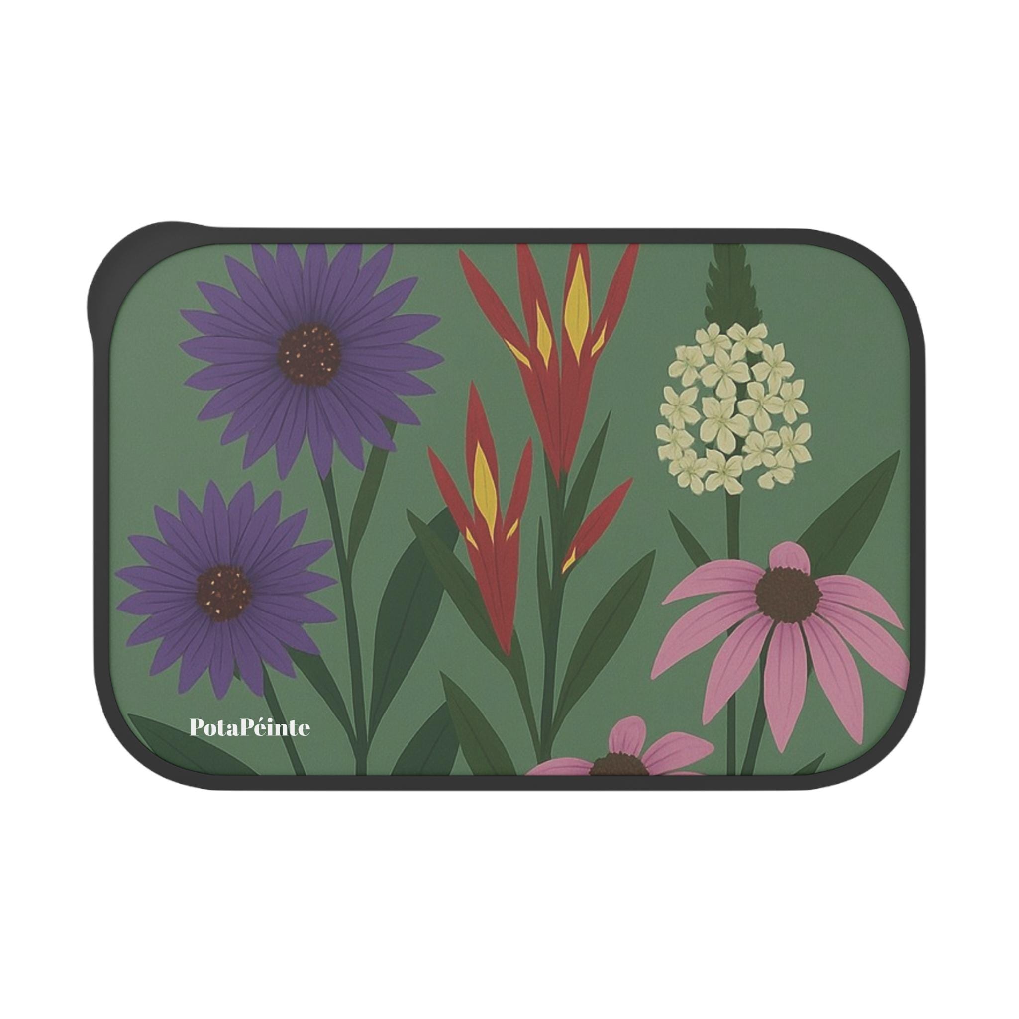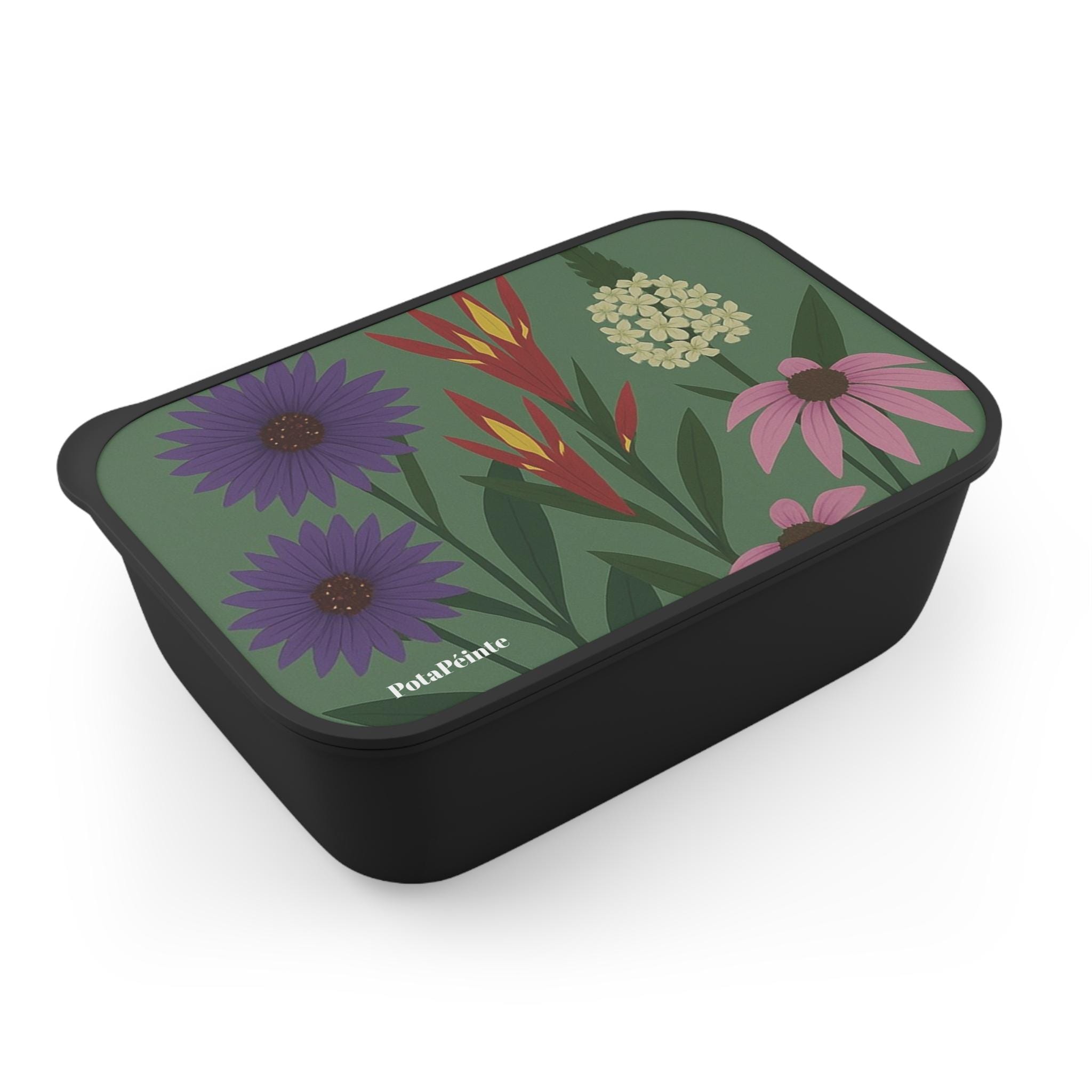 A custom designed eco-friendly Bento Box inspired by summer flowers found in Connemara, Ireland and Georgia USA. Ideal for picnics, lunches or food storage for leftovers. All of which help promote sustainable food consumption.