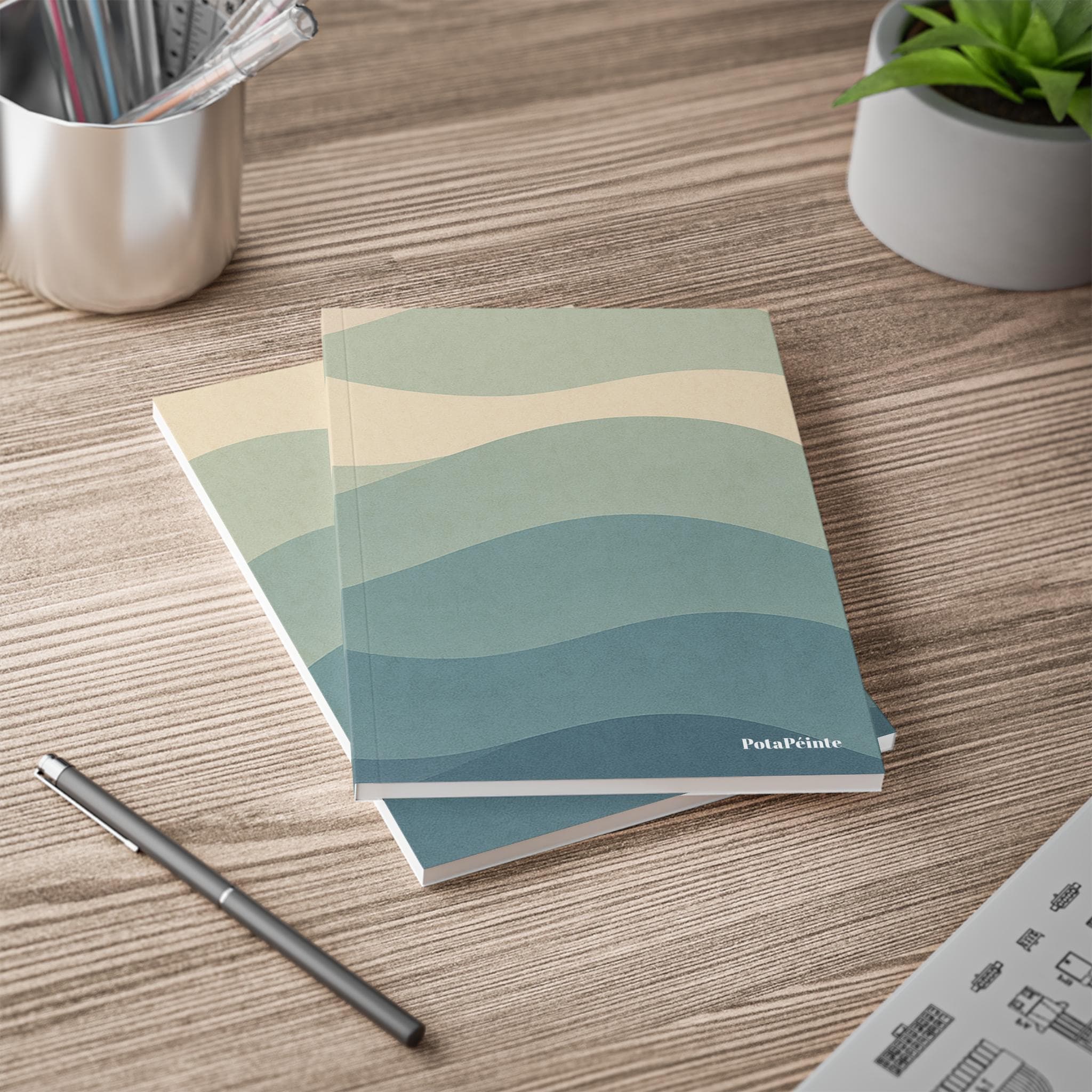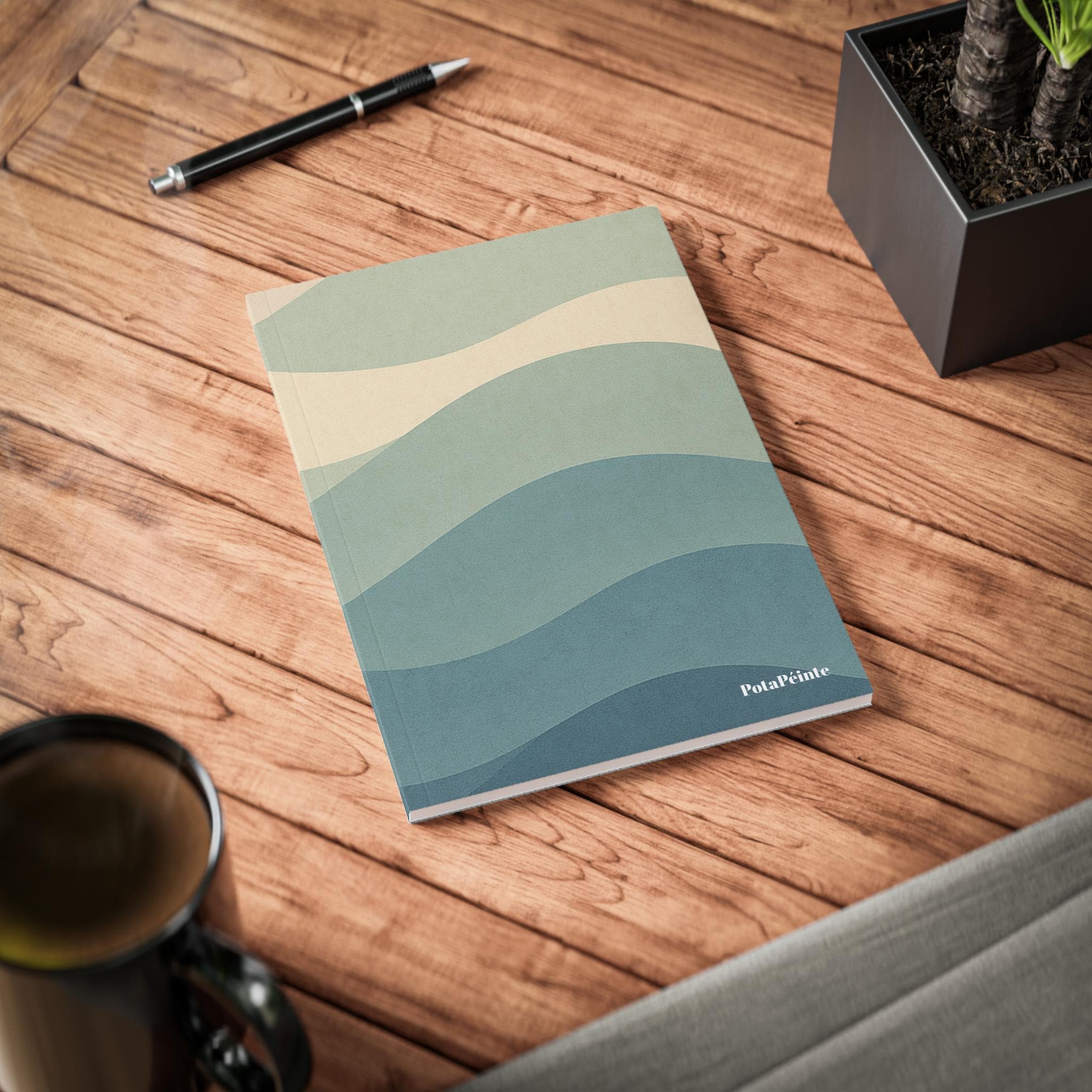 A5 softcover notebook. Made with 90gsm lined papers (150 pages), each notebook features a high-end, glue-bound laminated cover with a matte finish. .: One size: A5 (5.9" x 8.3") .: 150 pages (75 sheets) .: 90gsm lined paper pages .: Glue bound laminated cover with matte finish .: Front and back cover print .: NB! Small barcode on the back cover