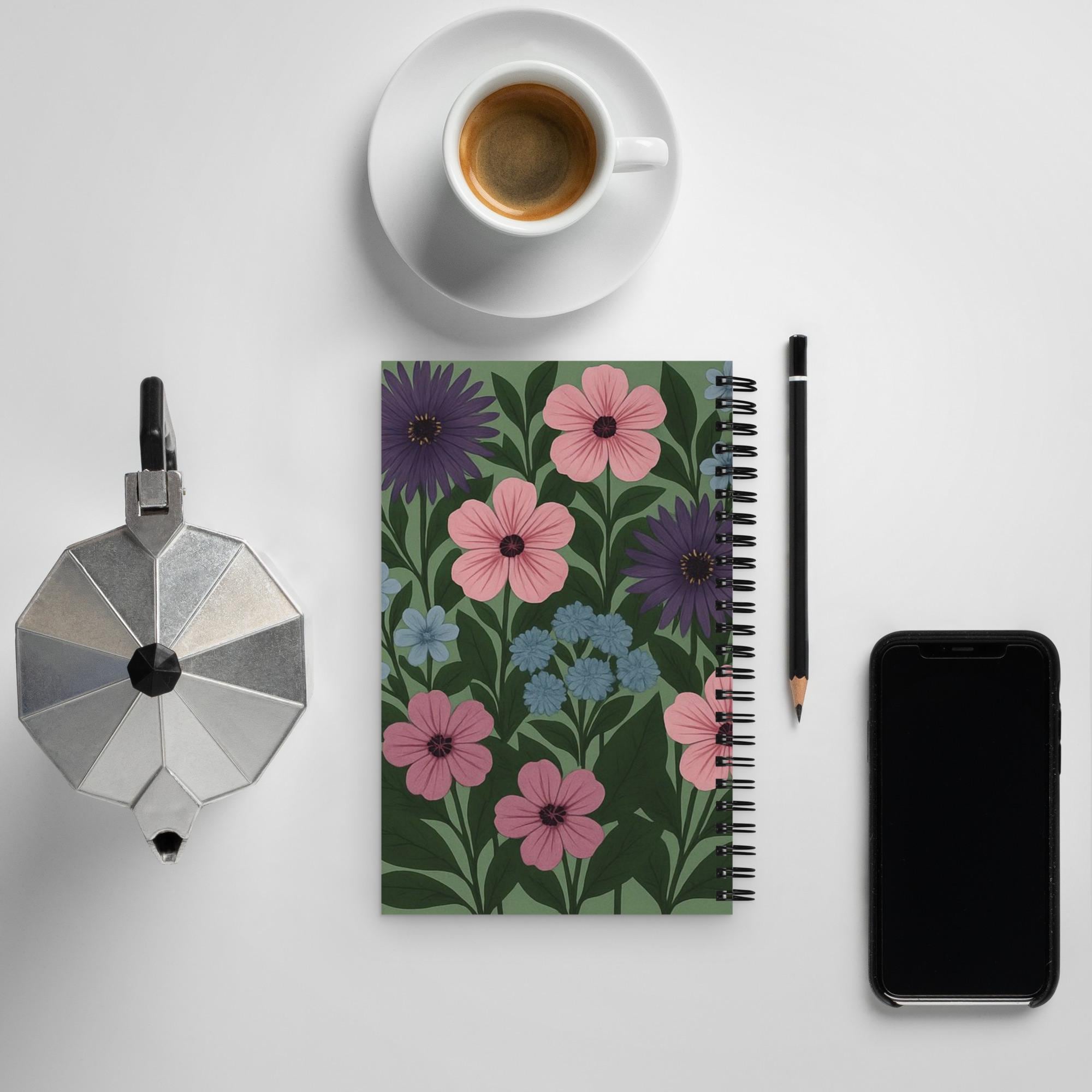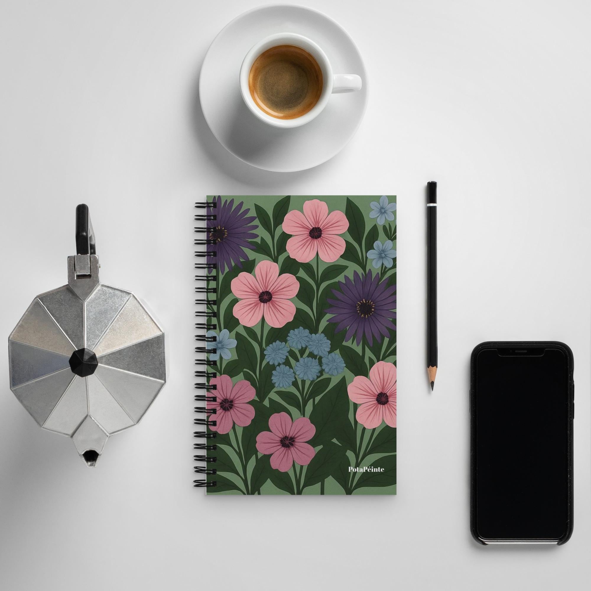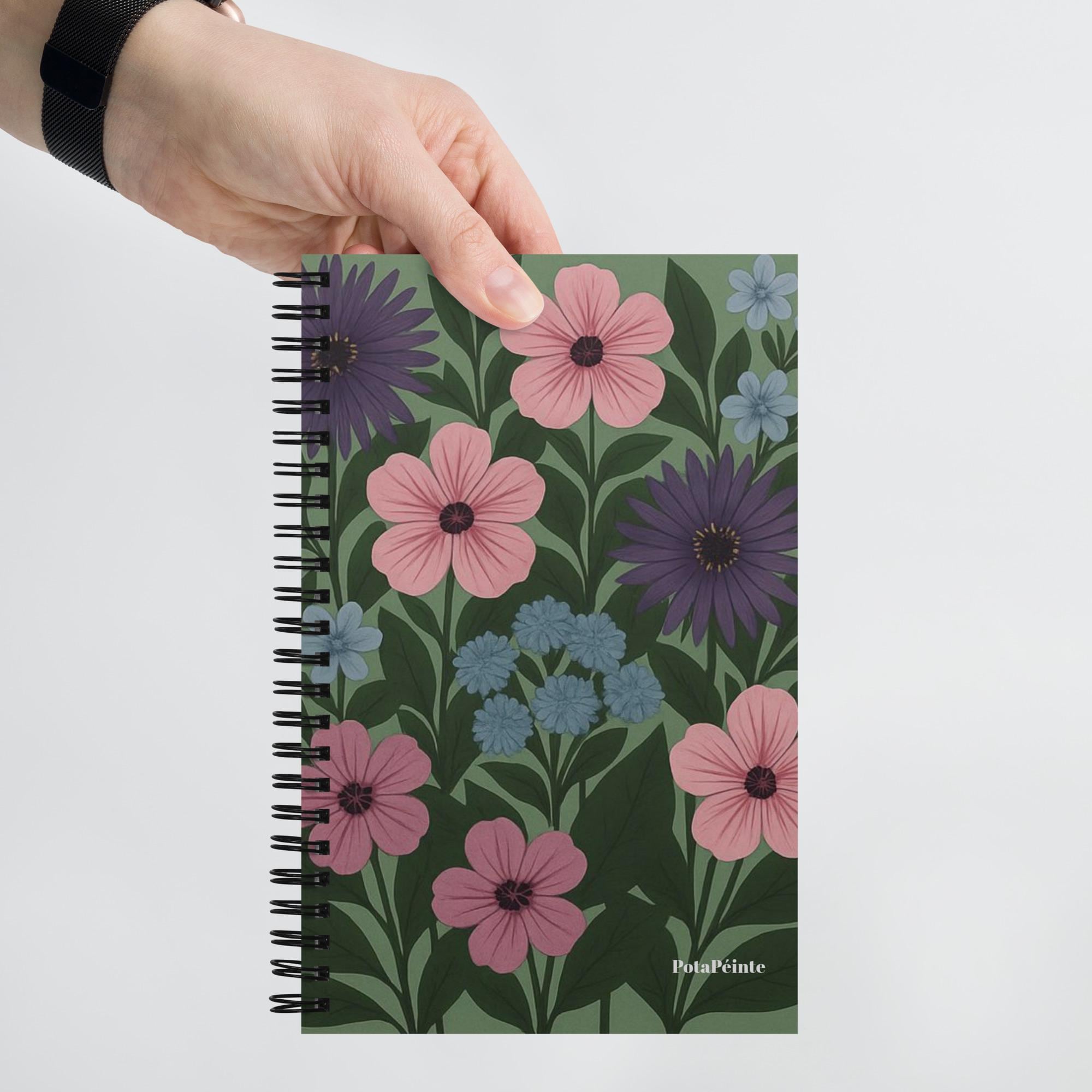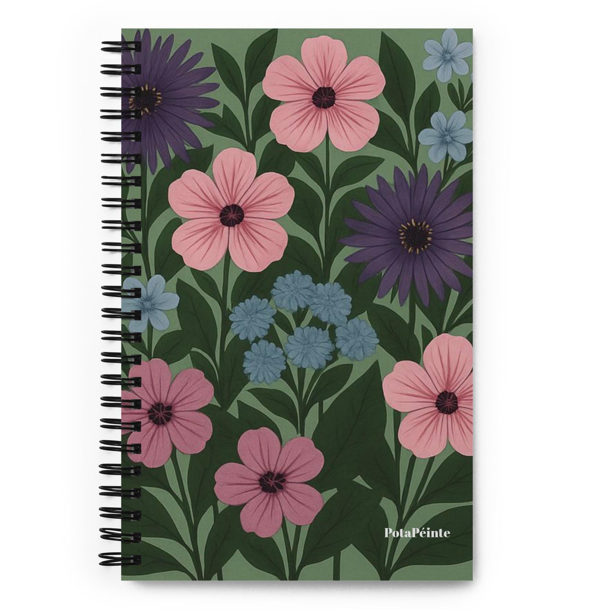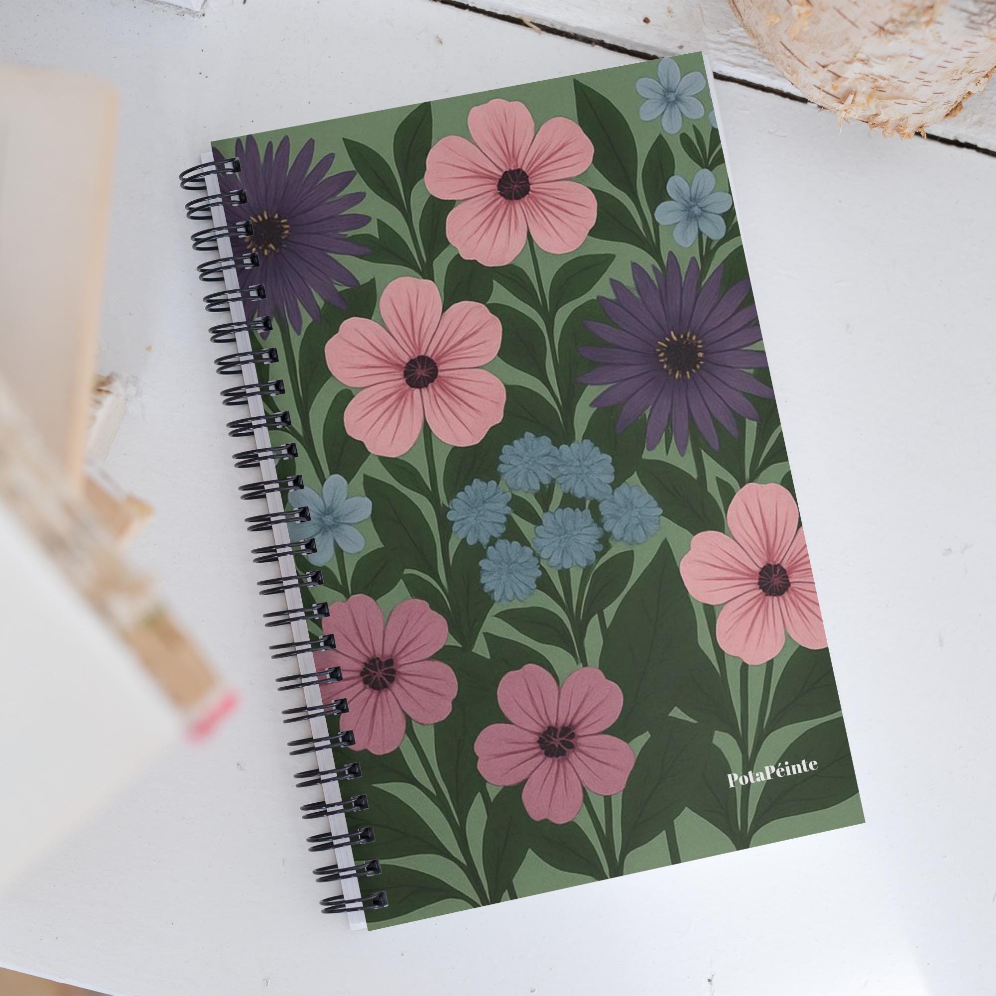 This custom designed wire-bound notebook will be a great daily companion whenever you need to put your thoughts down on paper. Inspired by summer flowers found in Connemara, Ireland and Georgia, USA.
