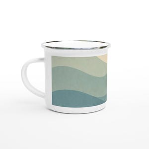 This lightweight Enamel mug is perfect for any event of the day, especially for camping. Whether you're on the go, having your morning coffee, or a warm beverage you can easily use this mug. Order a personalized Enamel mug to sell in your store, or for your next hike