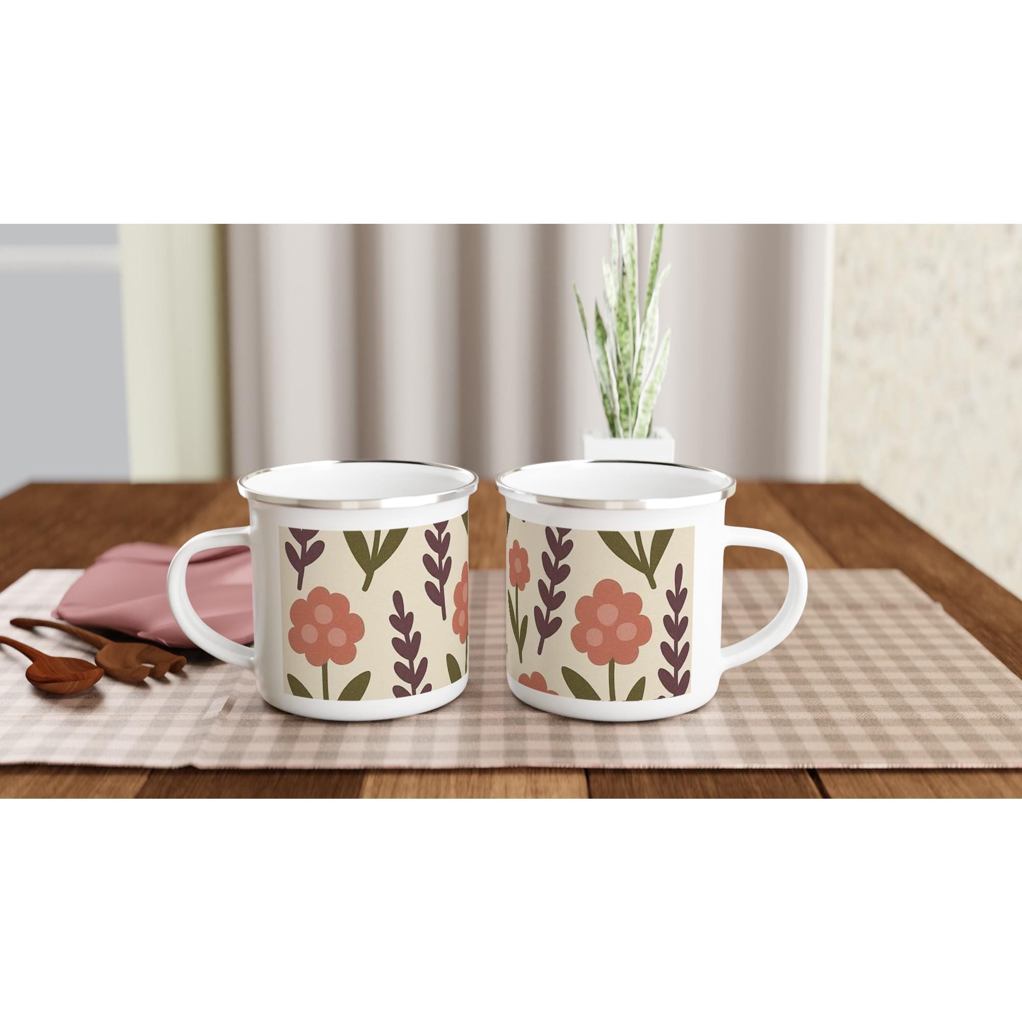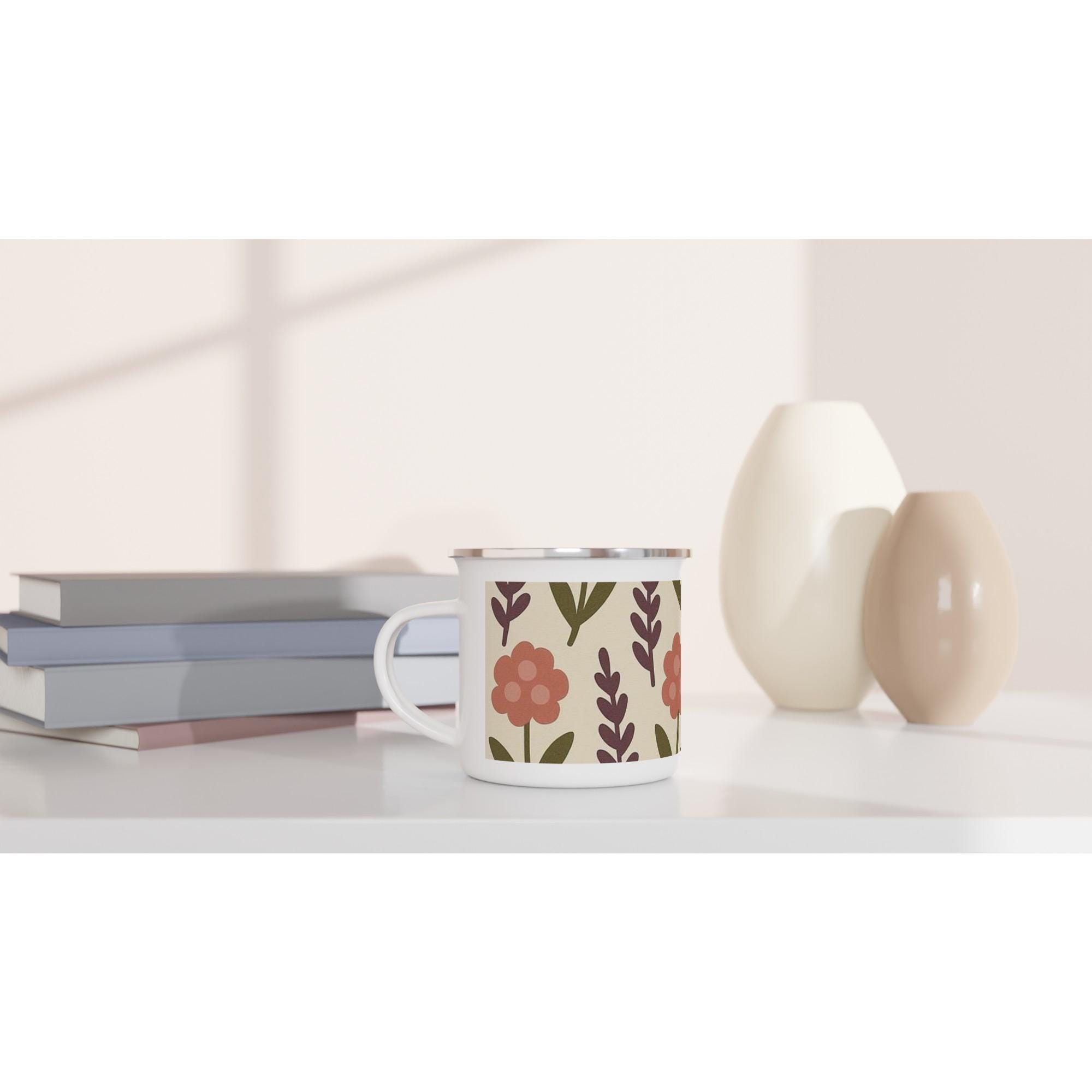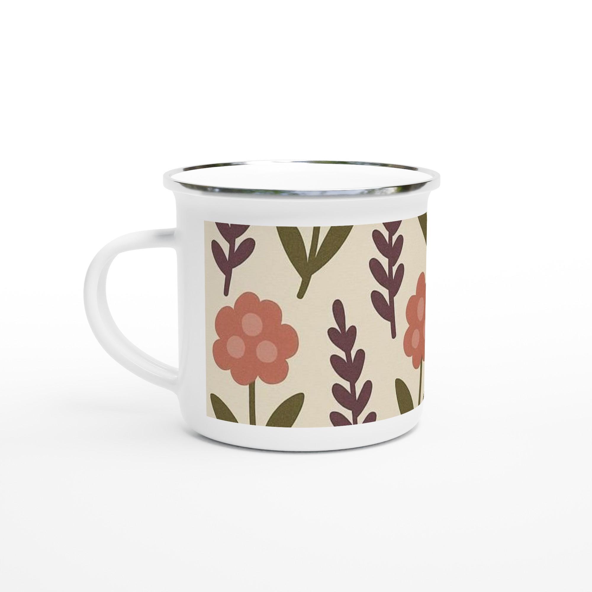 Autumn Flowers White 12oz Enamel Mug