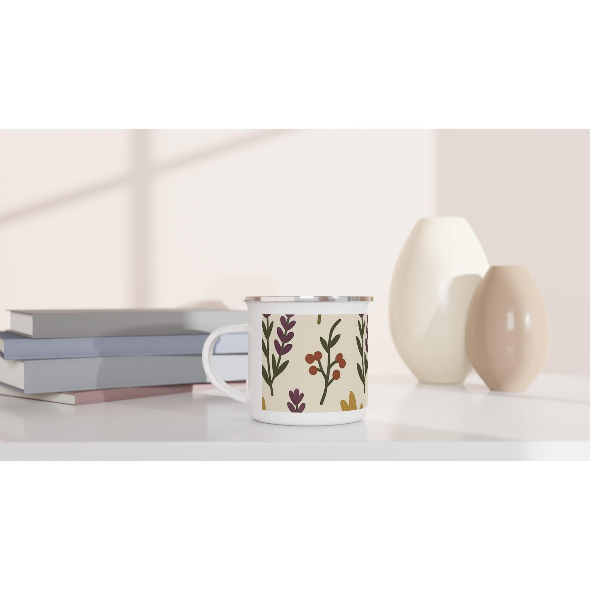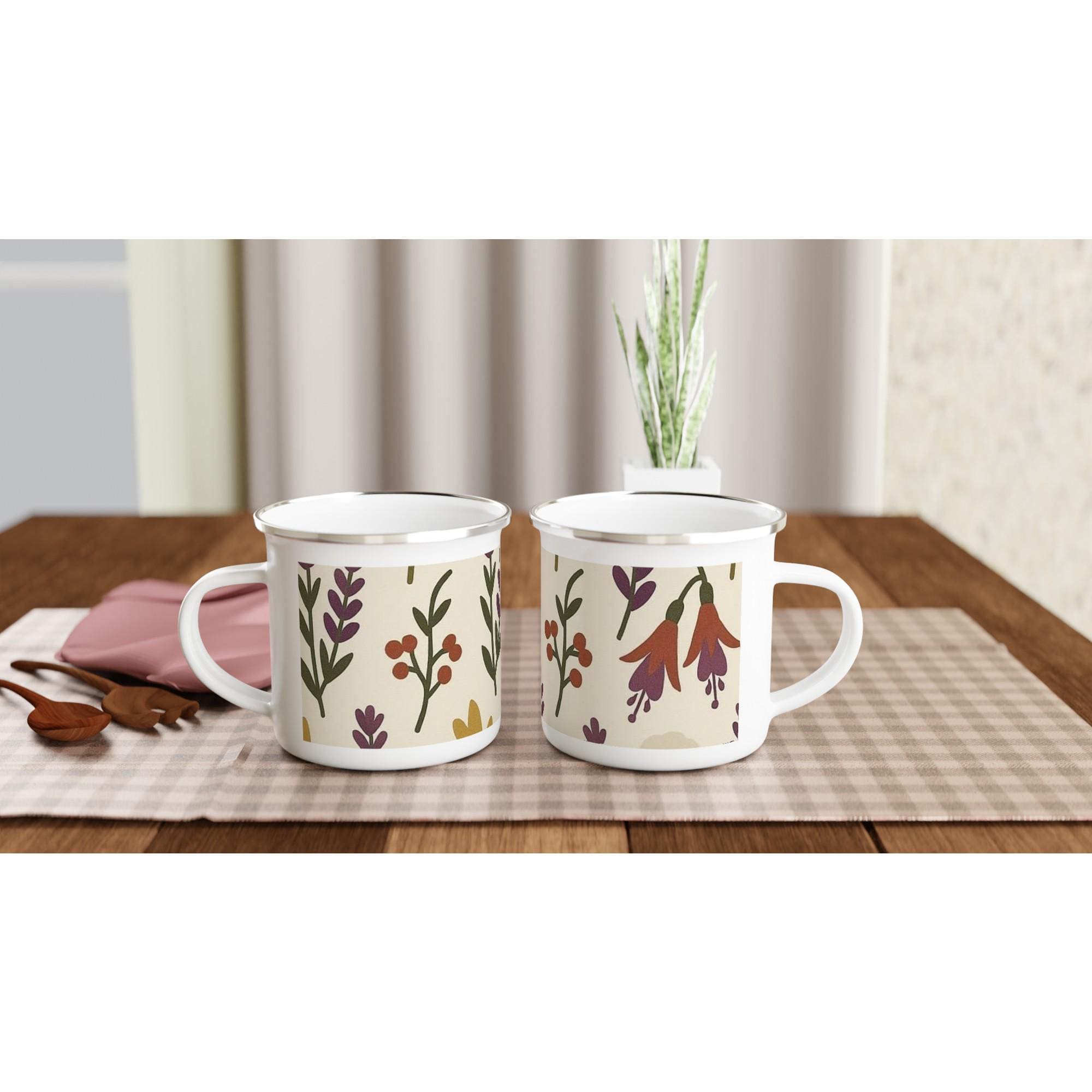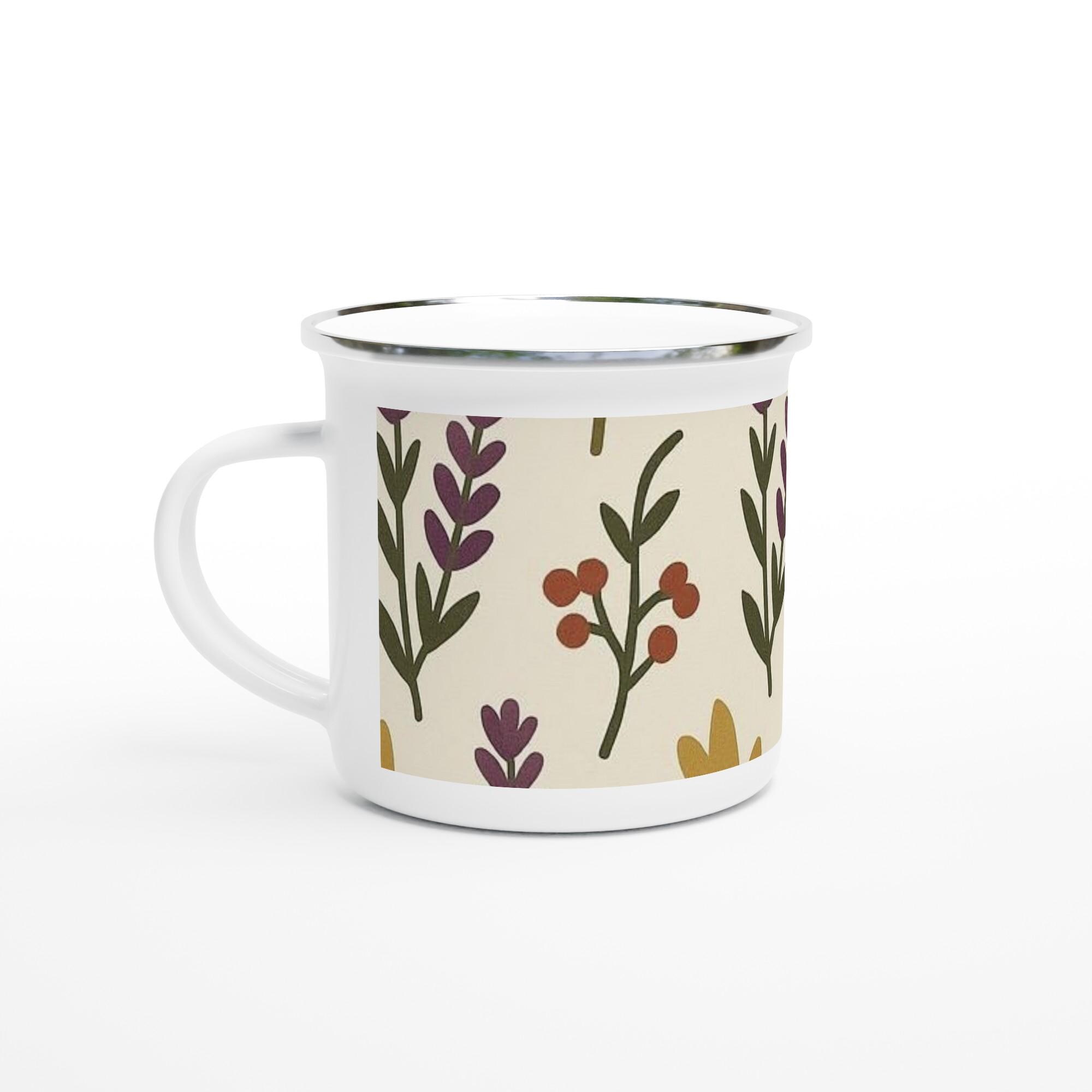 This lightweight Enamel mug is perfect for any event of the day. Whether you're on the go, having your morning coffee, or a warm beverage you can easily use this mug. Product Details: - Enamel 12oz mug - NOT dishwasher or microwave safe - White coating with a silver rim